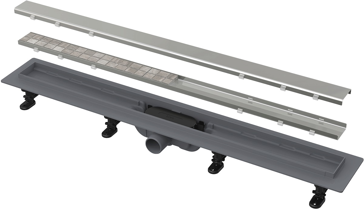 Sākums KANALIZĀCIJA TRAPI UN I KANĀLI ALCADRAIN Traps dušas (kanāls ar universiālu resti- dekor, flīzes) D40, hor. APZ19-850